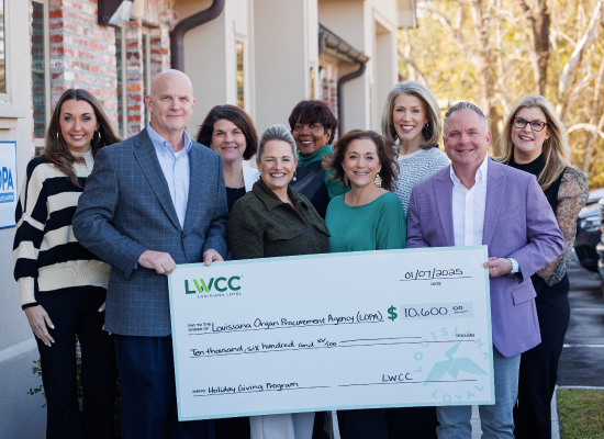 LWCC completed its fourth annual Holiday Giving Contest in 2024, teaming with agent partners to contribute $20,000 to nonprofits dedicated to strengthening Louisiana communities.